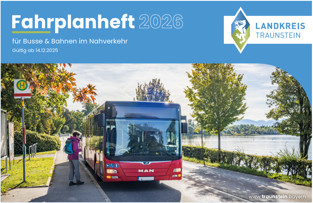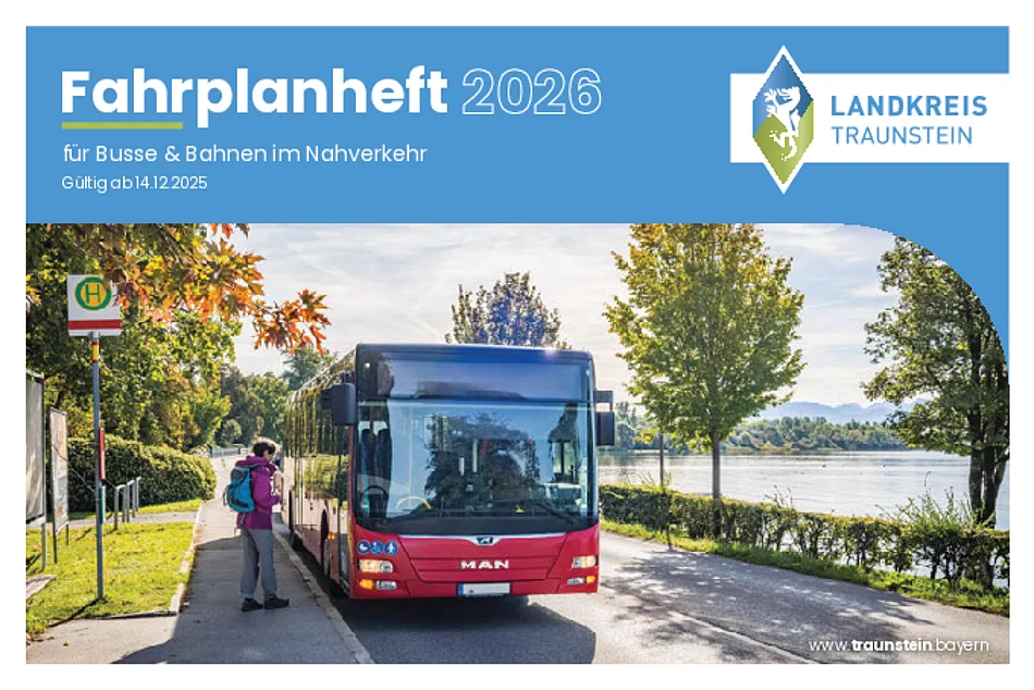Das neue Fahrplanheft für den Landkreis Traunstein ist ab sofort online verfügbar und liegt auch in gedruckter Form in allen Rathäusern und Tourismus-Büros zur kostenlosen Mitnahme aus. Es enthält auf 165 Seiten die aktuellen Fahrpläne aller Bahn- und Buslinien im Nahverkehr im Landkreis Traunstein.